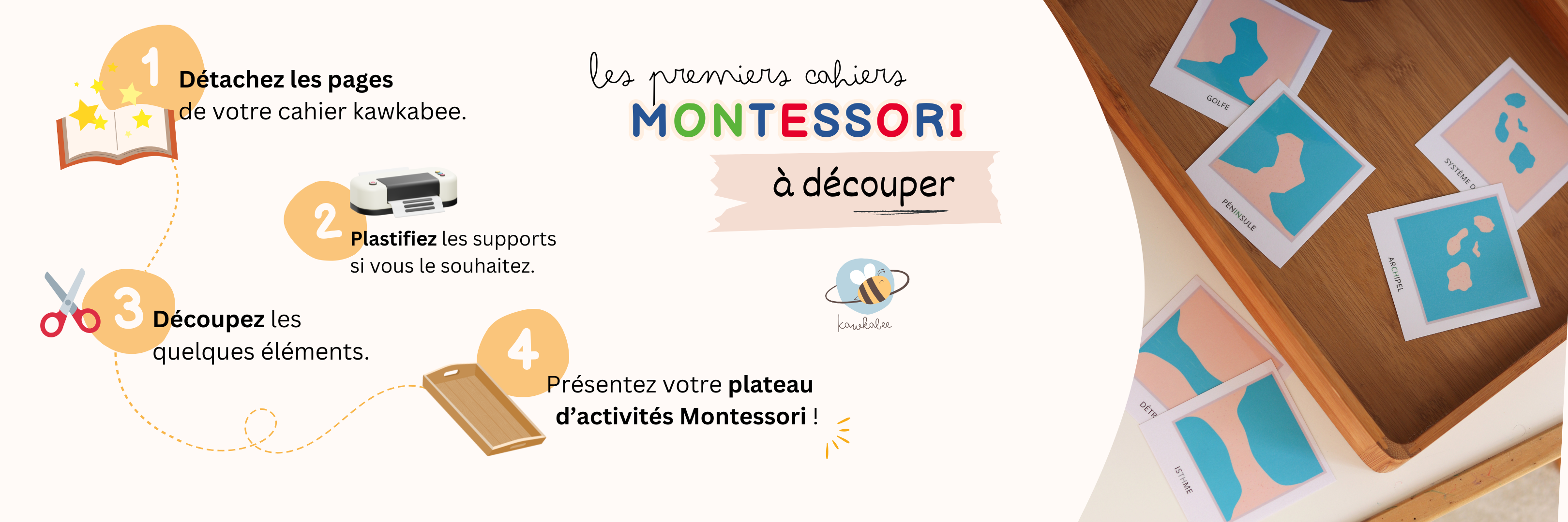 • Créez vos plateaux d'inspiration Montessori en découpant les supports et en suivant les instructions présentes dans nos cahiers.